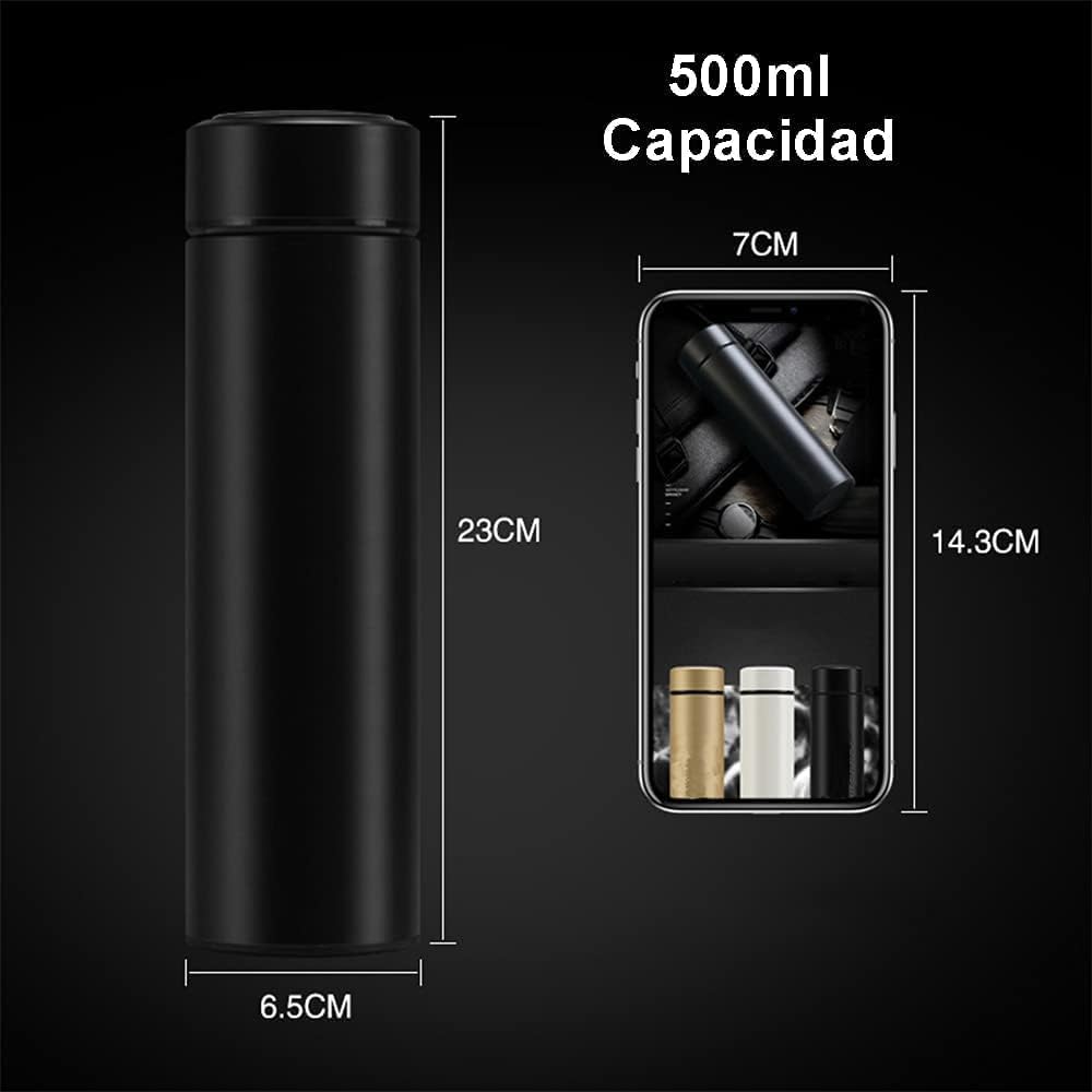 Axooms Water Bottle Thermal Smart Thermal Cup - 500 ml/17 oz Smart Thermos Cup Vacuum Bottle Stainless Steel Coffee Thermos LED Touch Screen with Temperature, for Home, Outdoor - Black